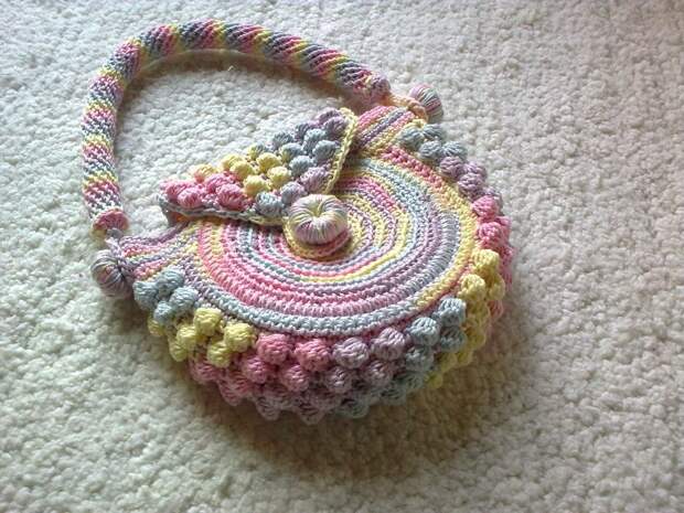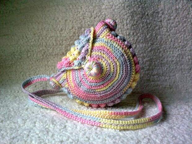 Вязала без схем, по принципу круга. У меня вышла сумочка в диаметре 16.5см. Бусинками мы решили не расшивать, может позже добавим.