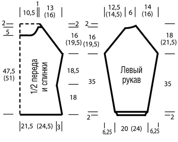 Вязать так же, как левый рукав, но в зеркальном отображении.СБОРКА